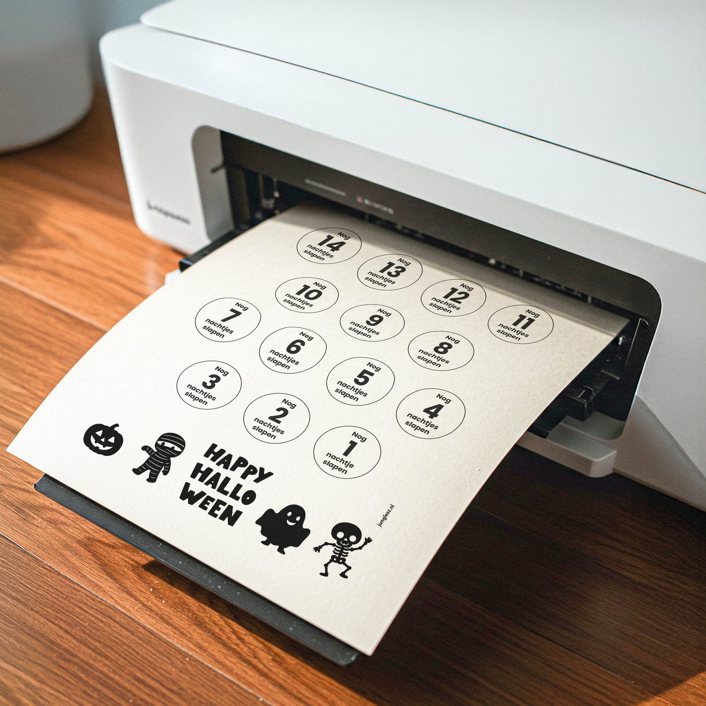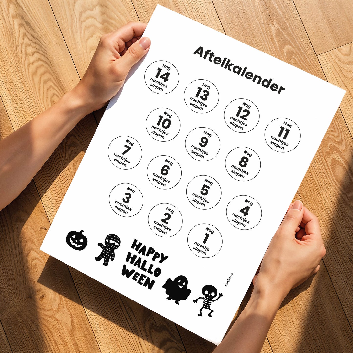 - prikkelarme Halloween aftelkalender in mooie, neutrale kleur