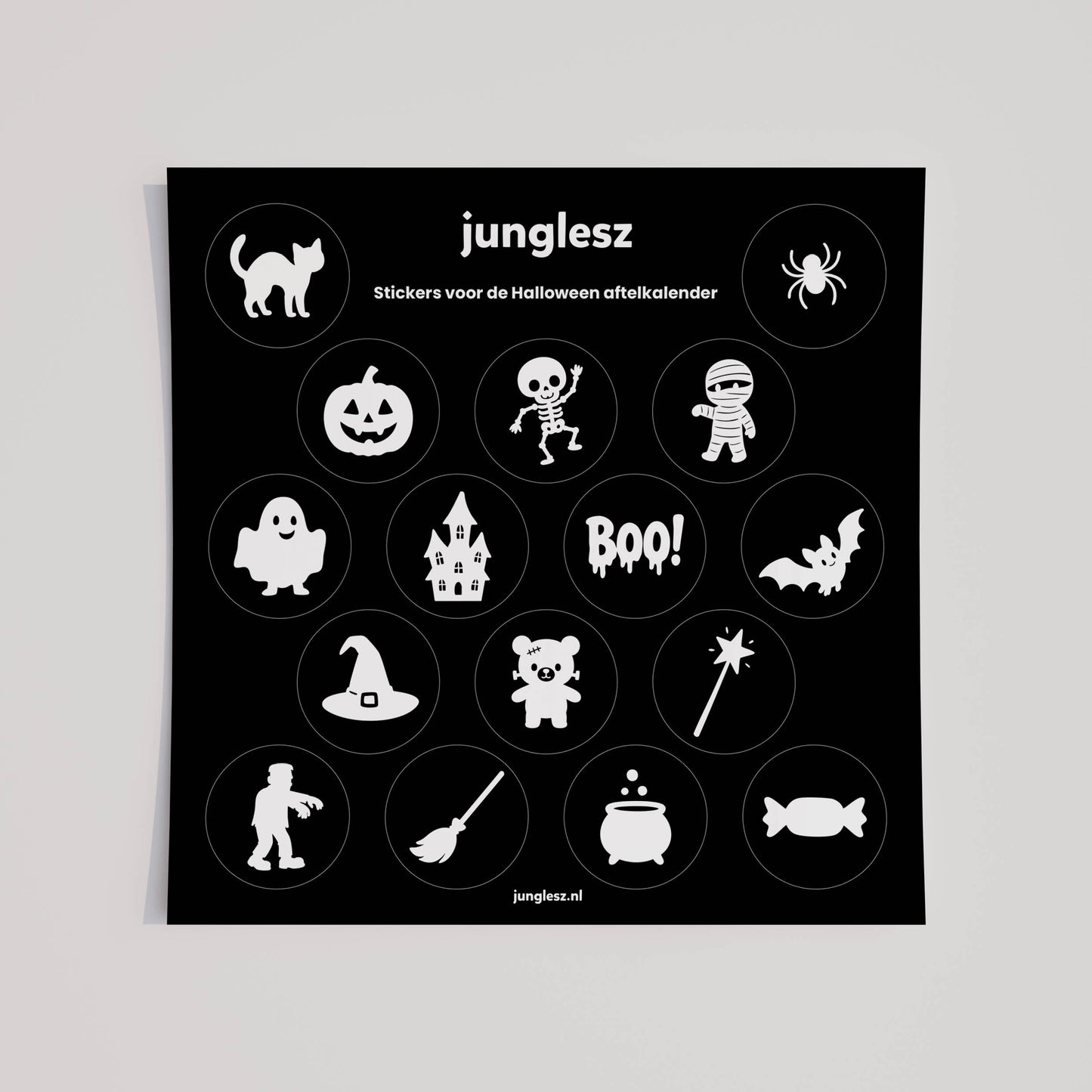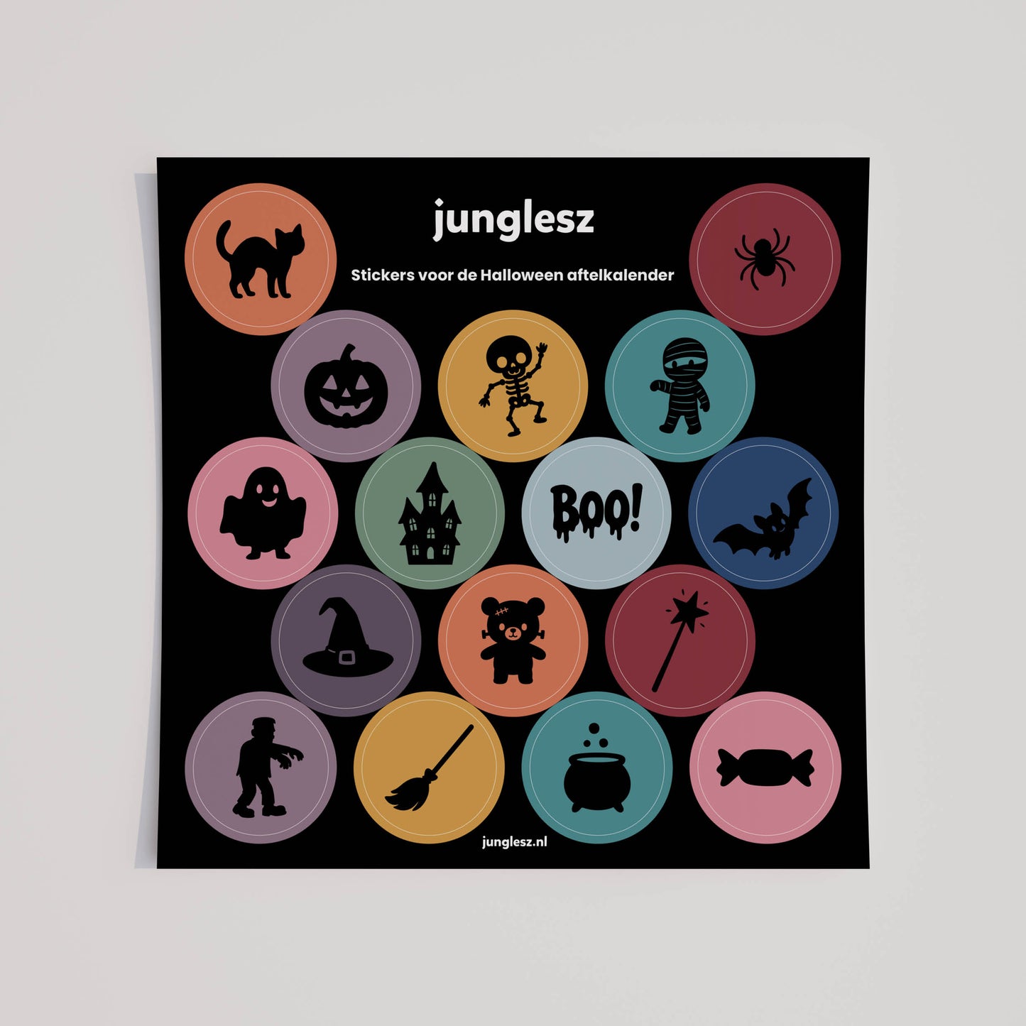 Maak het aftellen extra leuk én overzichtelijk met de bijpassende stickers voor de Halloween aftelkalender. De set is ontworpen in echte Junglesz-stijl: rustige kleuren, lieve pictogrammen en een kindvriendelijke, prikkelarme uitstraling. Elke sticker is een klein, positief momentje dat je samen deelt, zonder dat het druk oogt of overweldigend voelt.